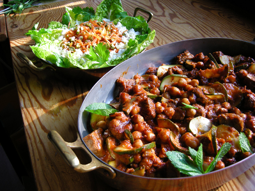 Niet nieuw in Nederland: in de vastenmaand Ramadan mogen Moslims tussen zonsopgang en zonsondergang niets eten of drinken. Wie het zich kan veroorloven lost dat op door overdag niet al te veel te ondernemen. Meestal wordt het in Marokko pas tegen het eind van de middag druk op straat. Winkelen en koken mag namelijk wel en iedereen wil zich natuurlijk direct na het moment dat je ‘een witte draad van een zwarte kunt onderscheiden’ (Koran) om de lage tafel scharen. En als het kanonschot, het tromgeroffel of de sirenes dat moment hebben aangekondigd, dan begint het ontbijt: Harira met choebz (brood), dadels en partjes citroen, toe honingkoekjes en koffie verkeerd met munt. Van de Harira (leenwoord uit het Arabisch waar het zijde betekent, dit vanwege de mooie gebonden substantie en ook vanwege de glans) bestaan evenveel versies als van de Nederlandse snert. Er is wel een algemeen voorschrift om de soep te eten: uit een kom. Wat citroensap erin knijpen en dan hoorbaar opslurpen, zo geniet je het meest van het aroma.